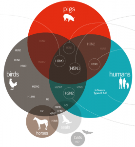سه گونه یا بهتر بگوییم 4 گونه ویروس آنفلوانزا وجود دارد A,B,C و D که میزبان نوع آخر گاو است. آنفلوانزای D با انسان کاری ندارد.