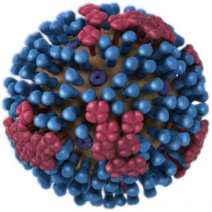 شکل روبرو نمای کلی ویروس آنفلوانزای A را نشان میدهد. هر ویروس A دارای 2 آنتیژن سطحی است که به رنگ آبی (H) و قرمز (N) نشان دادهشده است.18 نوع مختلف آنتیژن H شناختهشده است که از H1 تا H18 نامگذاری میشوند. برای آنتیژن N هم 11 نوع شناختهشده است که از N1 تا N11 نامگذاری میشوند.